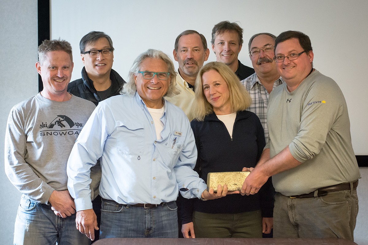 Two milestones were achieved in June 2013: the underground development reached the heart of the Valley of the Kings deposit, and the results of a positive feasibility study on placing Brucejack in production were announced. Through the remainder of 2013, the team’s attention was focused on extracting and processing a 10,000-tonne bulk sample to test the deposit. Though there were headwinds caused by the conflicting perspectives of the program’s consultants, and follow-on market turbulence, the outcome was successful. The bulk sample proved that the one-of-a-kind Valley of the Kings deposit, although nuggety, had the makings of a high-grade gold mine.
